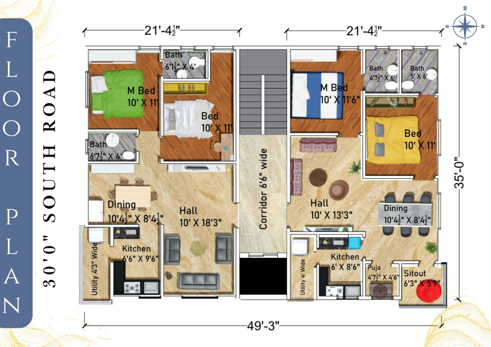 1650 SFT North Facing 3BHK PREMIUM FLATS EACH FLOOR 1 FLAT @ Pavani Nagar Vizianagaram